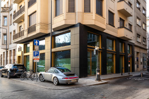 Földszint: üveghomlokzatú, 110 m²-es kereskedelmi egység, jelenleg művészeti galériaként hasznosítva, de a jövőben átalakítható exkluzív fitneszteremmé vagy más prémium funkcióra.