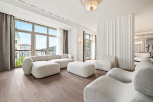 Összesen 6 luxuslakás – köztük öt teljes szintet elfoglaló, 210 m²-es apartman és egy kétszintes, 280 m²-es penthouse – kapott helyet ebben a különleges, önálló épületben, amely Budapest egyik legexkluzívabb dunaparti lokációjában található.