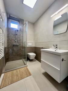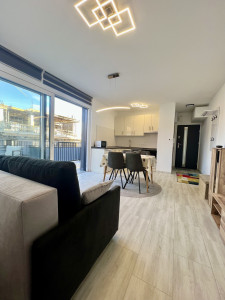 Beosztását tekintve egy amerikai konyhás nappali, hálószoba, előszoba, WC-s, zuhanyzós fürdőszoba, illetve a terasz került benne kialakításra.