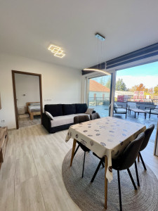 A CITY CARTEL INGATLANIRODA eladásra kínál Balatonlellén, vízparti utcában, új építésű 10 lakásos társasházban található, földszinti, 55 m2 lakóterületű (fél terasszal), 37 m2 nagyságú exkluzív saját teraszkapcsolattal rendelkező, 1+1 szobás, berendezett tégla lakást.