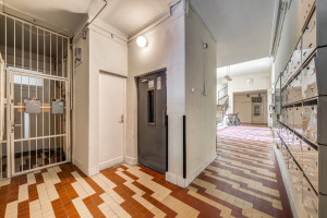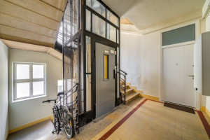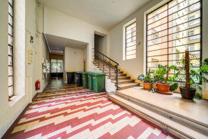 A társasház karbantartott, liftes, elegáns, klasszikus polgári épület, barátságos